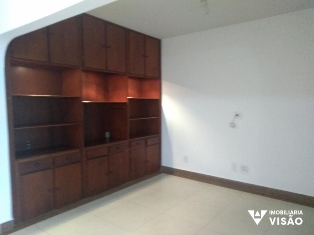 03 QUARTOS COM ARMÁRIOS SENDO 01 SUÍTE, SALA COM SACADA PARA 03 AMBIENTES, SALA DE JANTAR, COZINHA COM ARMÁRIOS, BANHEIRO SOCIAL, ÁREA DE SERVIÇO, BANHEIRO PARA EMPREGADA, VARANDA COM CHURRASQUEIRA E BANHEIRO, QUINTAL, ESCRITÓRIO. GARAGEM PARA 03 CARROS. PORTÃO ELETRÔNICO.
