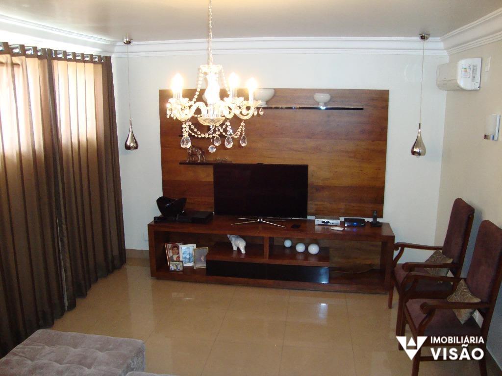 04 QUARTOS TODOS C/ AMRS., SENDO UMA SUÍTE E CLOSET, 02 SALAS, HALL DE ENTRADA, COZINHA PLANEJADA C/ 02 AMB., VARANDA C/ JARDIM, DISPENSA, WC SOCIAL, DEP DE EMPREGADA C BANH., LAVANDERIA, GARAG. P/ 03 CARROS