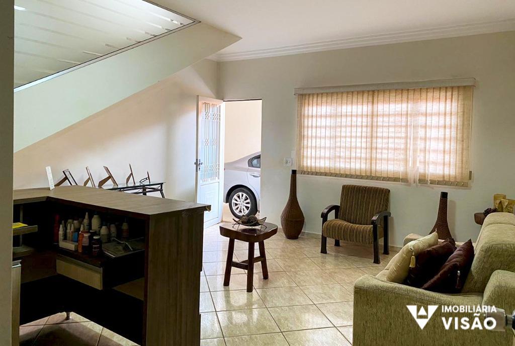 PARTE SUPERIOR 03 QUARTOS S/ 01 SUITE, SALA, BANHEIRO E SACADA.PARTE INFERIOR SALA, COZINHA, BANHEIRO SOCIAL, 02 VARANDAS, QUINTAL, COMODO COMERCIAL, ÁREA DE SERVIÇO E GARAGEM P/03 CARROS.